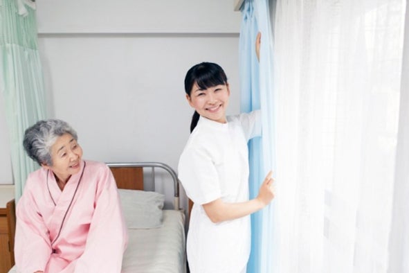 光触媒の抗菌効果により病室の環境を衛生的に保ち、リスクを減らす効果が。清潔さが重要視される医療施設に、iNのカーテンはピッタリです。