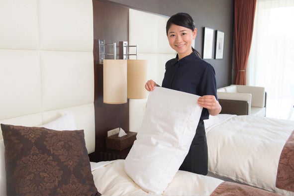 わずかな室内光でも客室の消臭ができます。臭いの残る喫煙ルームの消臭にオススメです。さらに、iNカーテンの曲線美はお部屋の高級感を演出する効果も。