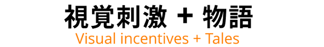 それぞれの絵には、感覚を強める想像的な物語が描かれています。
