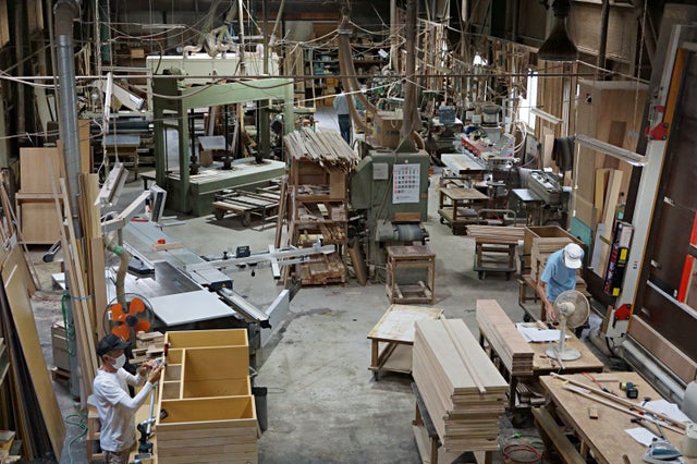 イヌワラフの製品は「木の国・岐阜」の木工職人が作り、全て岐阜県内の工場で製造しています。乾燥度の高い上質な木材を厳選し、加工から製造まで全て自社工場で行っています。