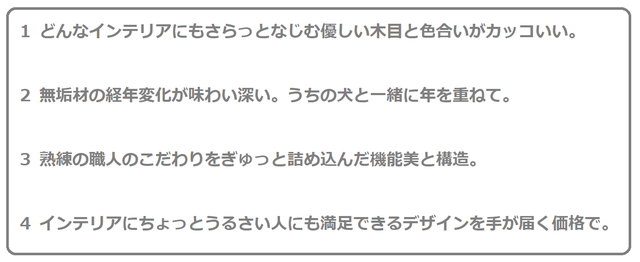 家具は海外製品や安価な量産品に押され、国産品の良質な家具を製造する業者は、減少傾向です。近年の世界を取り巻く経済状況や高騰する木材価格の影響を受け、厳しい状況が続いています。そんな中、新たなターゲットとしたのが「犬と人が寄り添って暮らせる心地良い家具」。