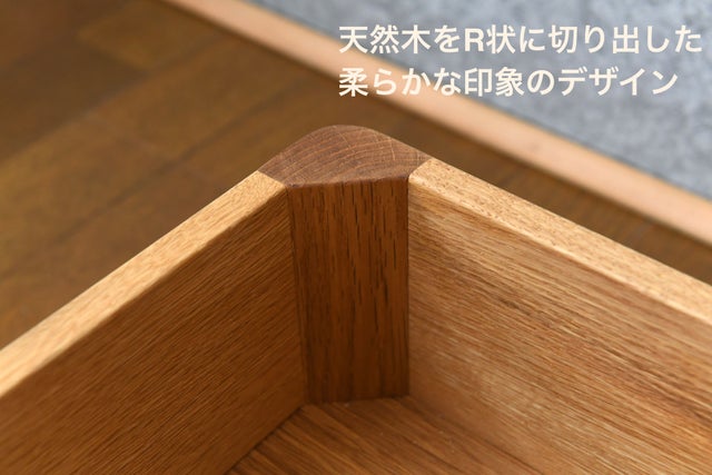 ナチュラルな色合いで部屋に温もりを感じさせるオークは、家具によく使われる材質でナラとも呼ばれ、耐久性に優れ、長く使い続ける家具に最適です。はっきりとした木の目が美しく、飽きのこない堂々とした重厚感があります。