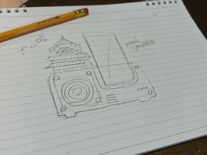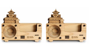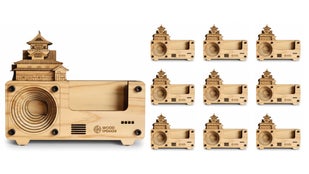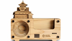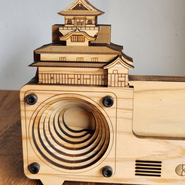 国宝・犬山城のフォルムを合わせた木製スピーカーへと再生。