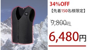 34%OFF「スマート発熱ベストINWARMIN」1枚