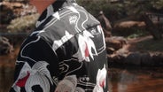 - 老舗「IOLANI」の1950年代レプリカ鯉と金魚の和柄生地で作るレーヨンアロハ。