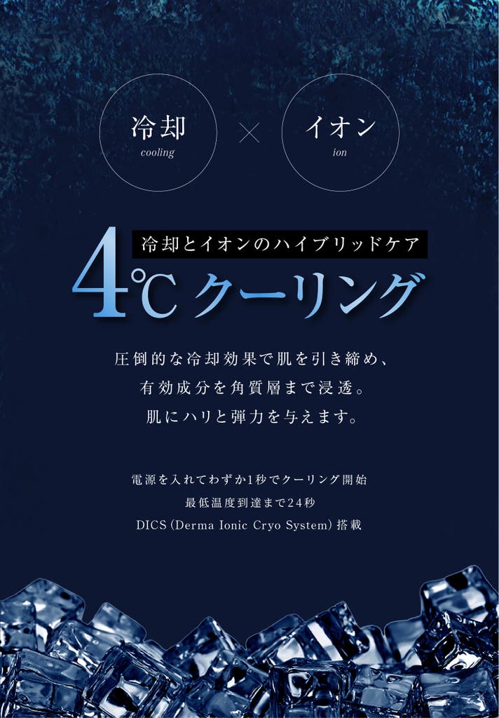 わずか1秒で急速クーリング。最低約4℃まで急速に冷却するスーパークリオモードは、上昇した肌温度を効果的に下げ、肌を整えます。