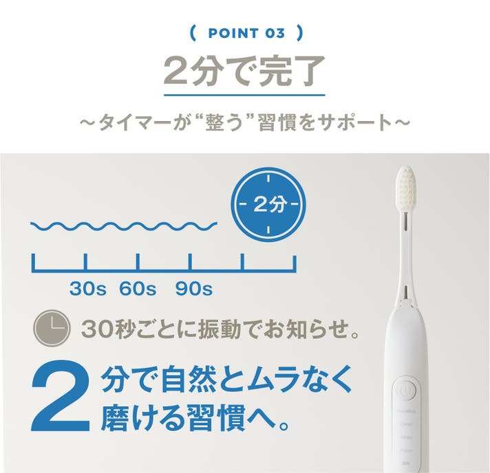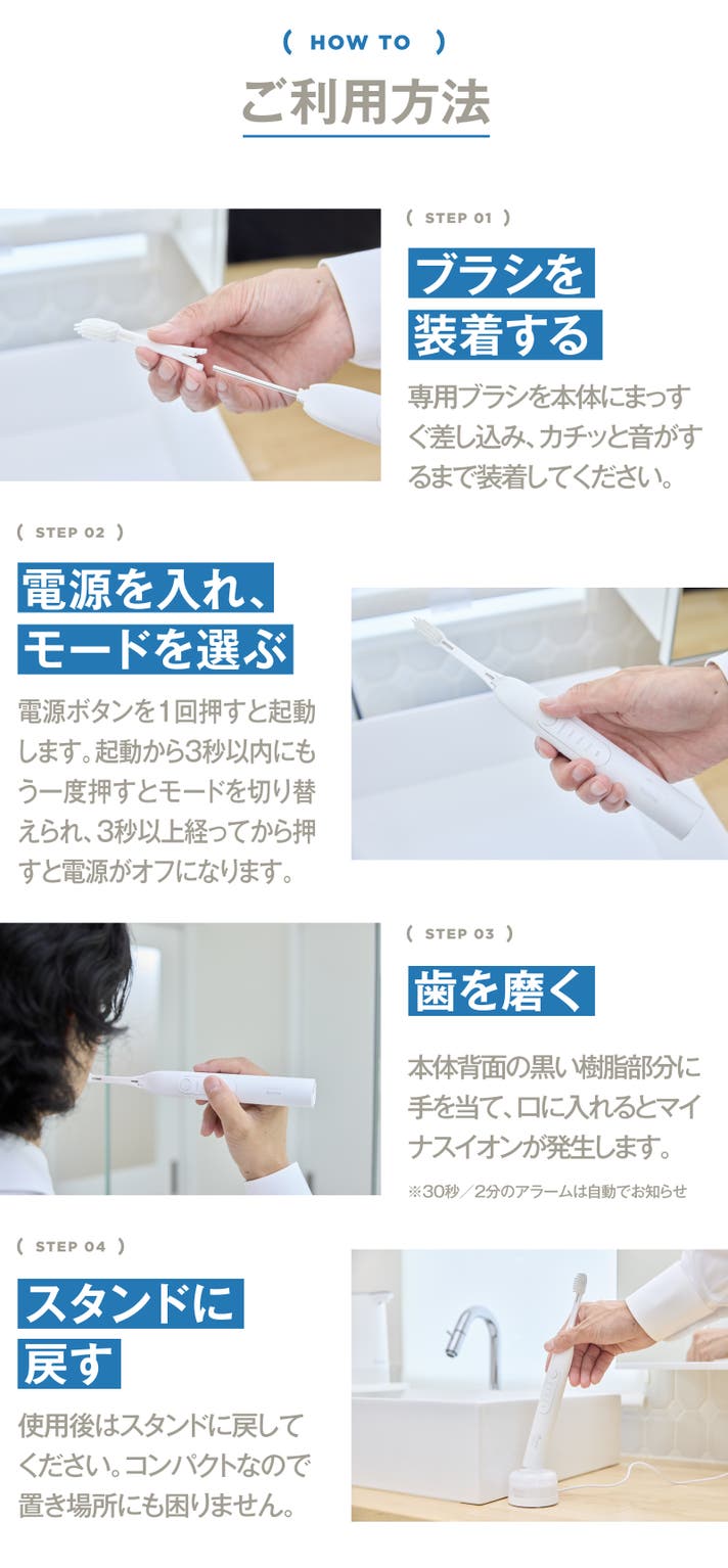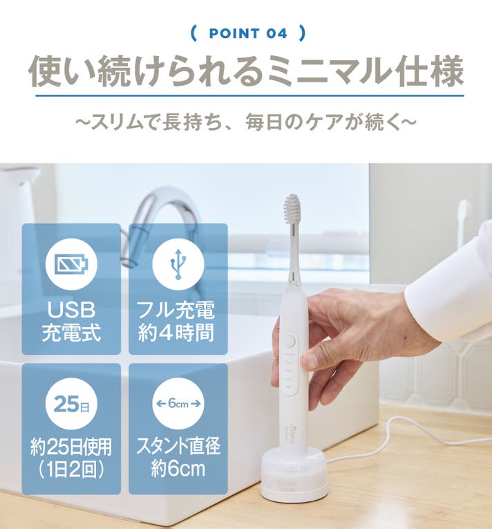 電動ブラシが初めての方にも、しっかりケアしたい方にも、安心して気軽にお使いいただける1本に仕上げました。
