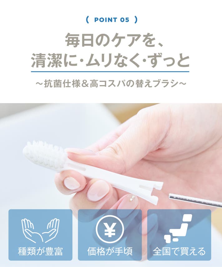 お手頃価格&豊富な替えブラシで、続けやすい。