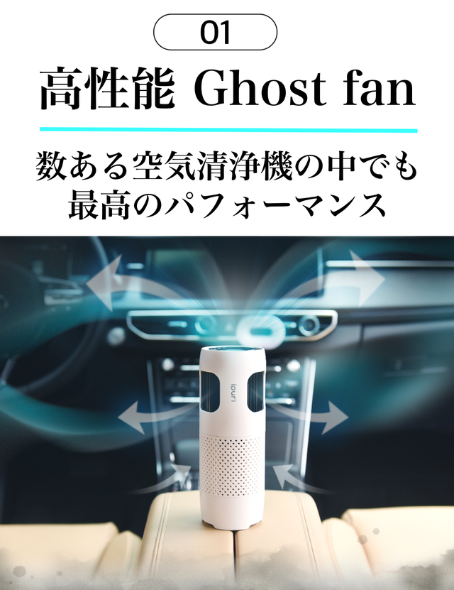 超強力な4800Rpmのモーターで回転するGhost fanは、車内の99.97%の超微細なほこりを除去するためのパフォーマンスを引き出すパワーを発揮してくれます。