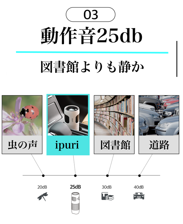 「ipuri C1」の動作音は非常に静かです。以下に、他の音と比べています。