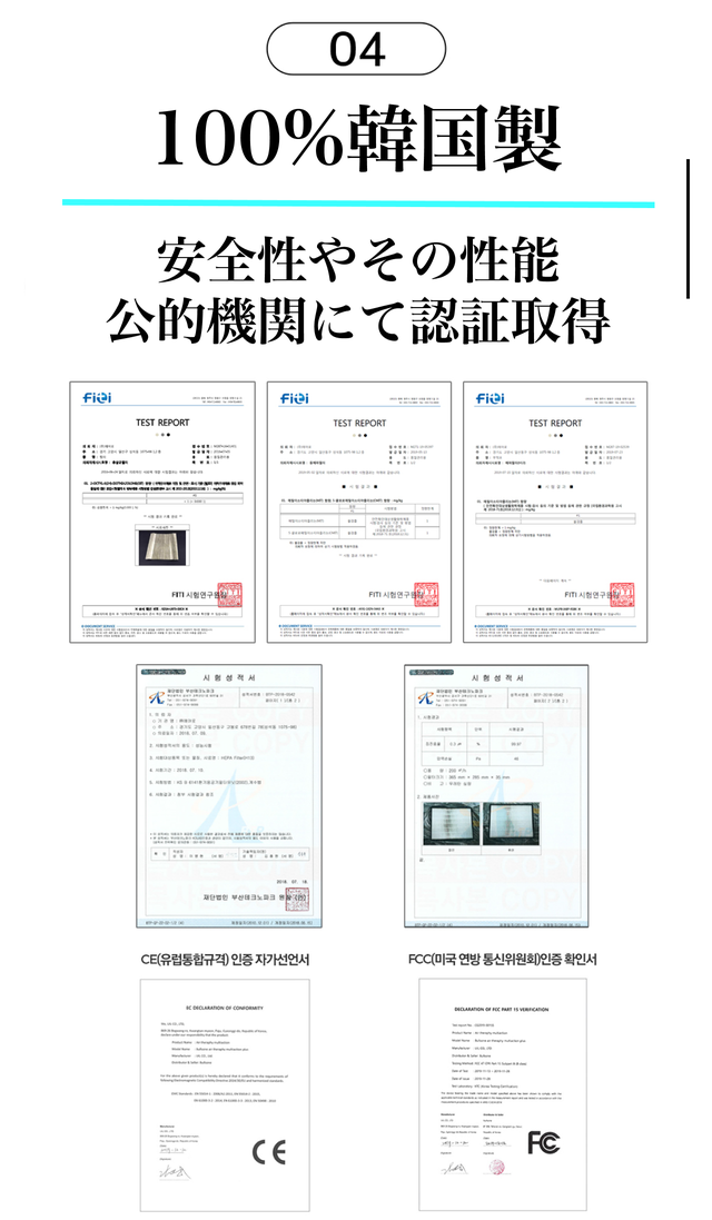 もしろん、公的機関にて様々な認証を取得して、制作、さらには使用する際の安全性やその性能についても実証されています。