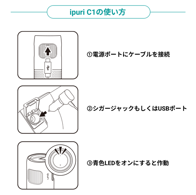 ということで、車載用空気清浄機の基本的な役割をサクッと知って頂いたところで、車載空気清浄機「ipuri C1」のめちゃくちゃおすすめの特徴をご紹介してきます!