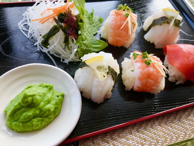 手まりずしをブロッコリー×わさびをつけて♪♪