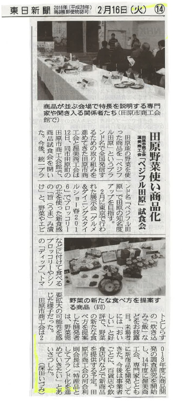 下記の写真は東日新聞に掲載された、市内での試食会記事です。