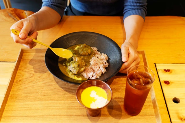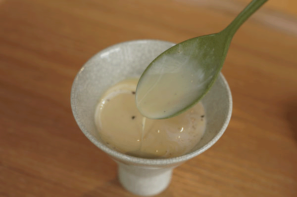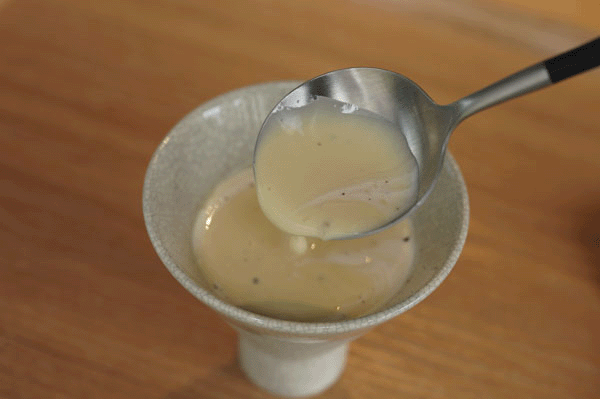 (スープが落ちきらず、若干スプーンの先端に残ります)