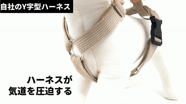 気管支に異常がない一般なワンちゃんだとしてもハーネスなどから気道が押されると、呼吸が不便になりやすいです。