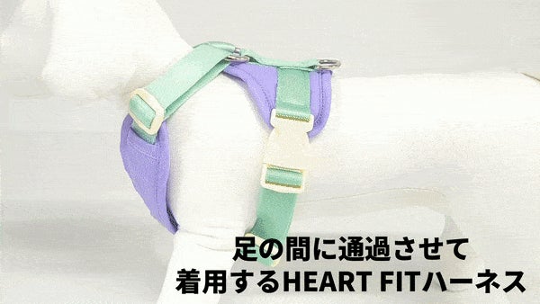 HEART FITハーネスは足を入れなくても着用させることができるので足を触るのを嫌がるワンちゃんでも、簡単に着用できます。