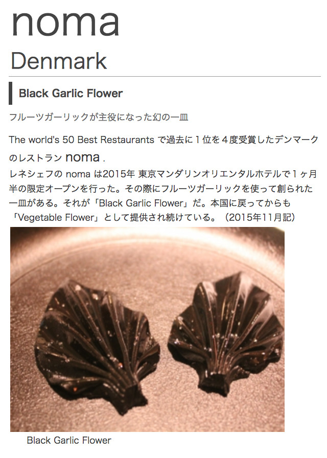 とても光栄な事なのですが、フルーツガーリックは、世界レストランランキング1位を4回受賞しているデンマークのnomaでも採用していただいています。