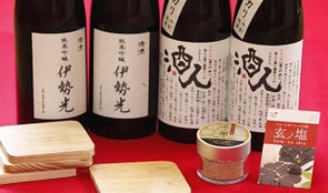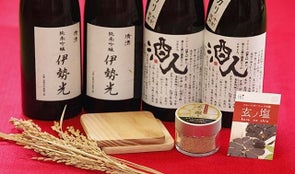 平成29年に醸された、神の酒<清酒 純米吟醸伊勢光>を10月中にお届けします!日本酒を楽しむ際に、御つまみに振りかけて頂くと最高に旨味を引き出す玄ノ塩をセットに!