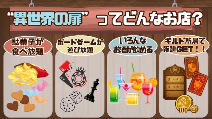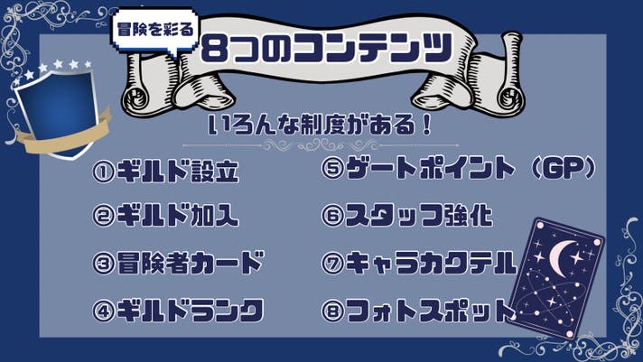 - ギルド制度・キャラ接客・駄菓子食べ放題などもりだくさん!