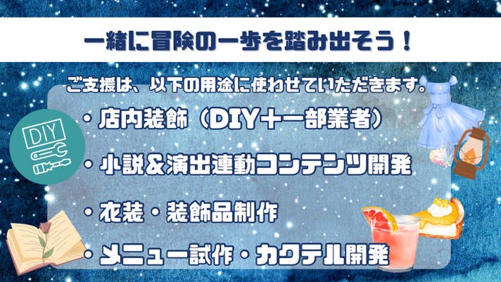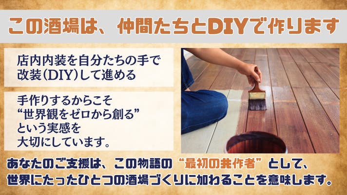 あなたのご⽀援は、この物語の“最初の共作者”として、世界にたった⼀つの酒場づくりに加わることを意味します。