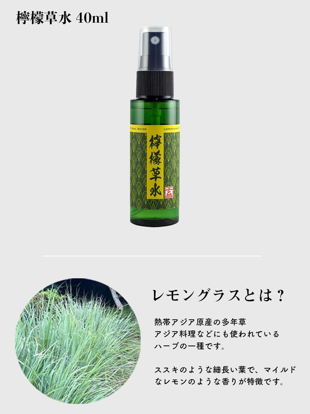 檸檬草水(レモングラス)は、爽やかで酸味を感じるようなシトラス系の香り