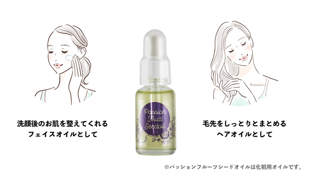 パッションフルーツシードオイル(香り付き)は化粧用オイルとしてご利用ください。