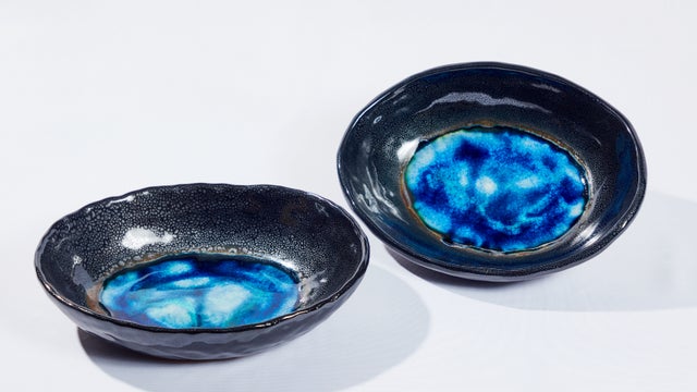 石垣焼の器は、陶器とガラスを融合して焼き上げた作品です。