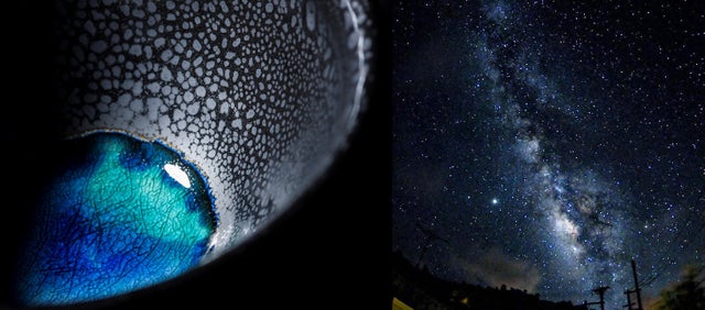 石垣焼の油滴天目の器は黒色ですが、小さな銀色の滴模様があります。紅茶を注ぐと金色の様に、緑茶を注ぐとほんのり緑茶色に。光を楽しむ様な器です。今回はお皿のご紹介が多いのですが、その滴模様は、石垣島の満天の星空の様です。