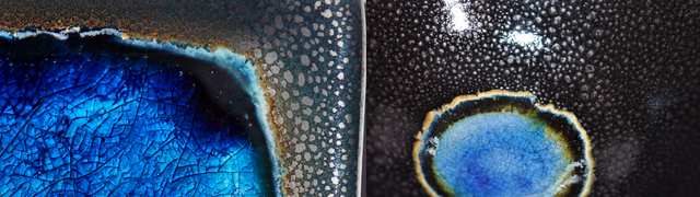陶器は焼成時に焼き縮まっていきます。反対にガラスは焼成時に膨張して伸びていきます。その収縮の反発によって生じる貫入(かんにゅう)という現象に、作り始めた当初は大変苦戦致しました。