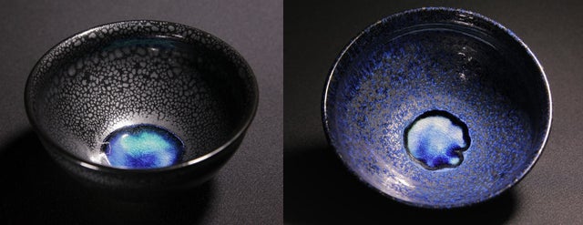 【大英博物館収蔵:左(耀変玳玭天目茶碗 )右(碧海油滴天目茶碗)】