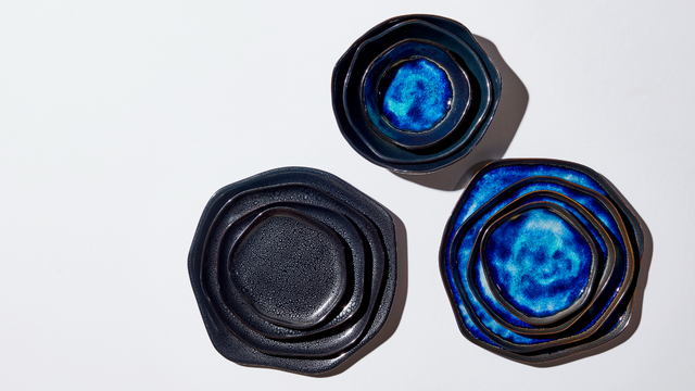 『石垣ブルー』は全て異なる模様と、色合いに焼き上がります。