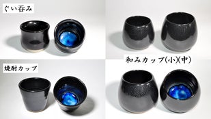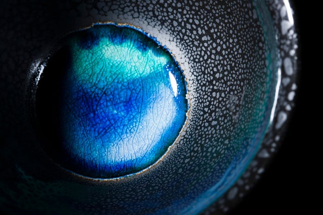 石垣焼は伝統的な油滴天目の器に、『石垣ブルー』を独特の技法で、映し出す焼物です。