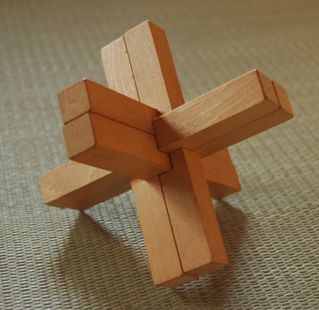飛騨の匠の技と言われている、千鳥格子の木組パスルです。