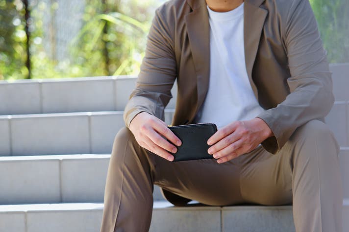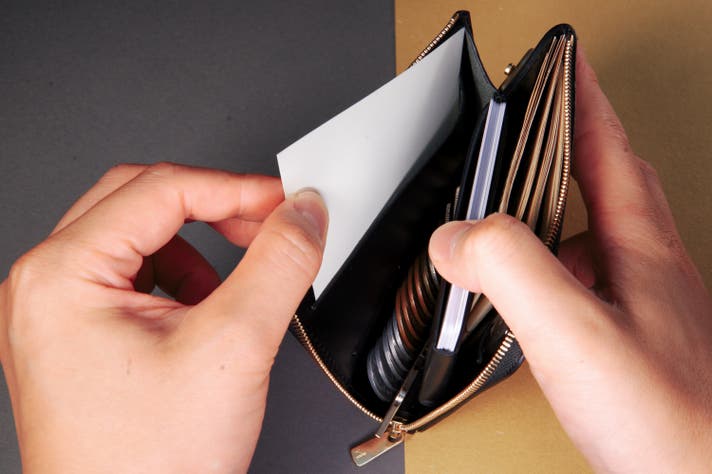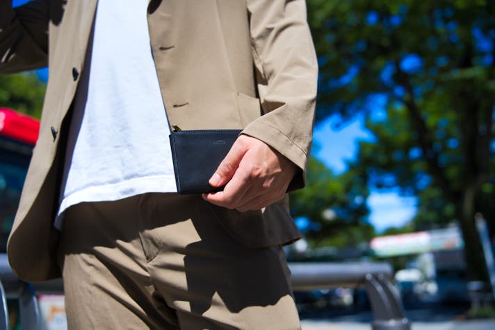 名刺もスマートに収納できる薄型設計。上質な質感で、ビジネスシーンにもマッチ。