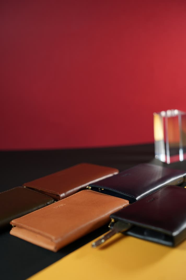0.1mm単位の調整と縫製により、収納力・機能美・コンパクトさを兼ね備えた、初作にして完成度の高いエレガントな財布が誕生しました。