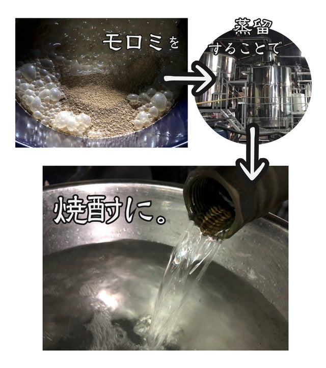 このモロミを蒸留器に入れ、蒸留することで焼酎の原酒が生まれます。