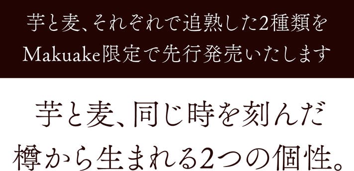 - 同じ樽でも異なる個性を纏う「芋と麦」。2つの味わいが楽しめる飲み比べセット。