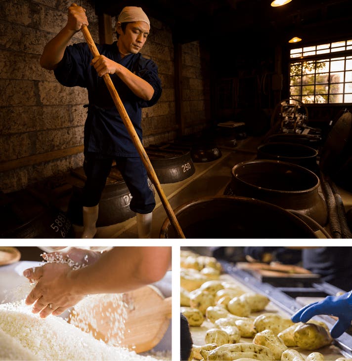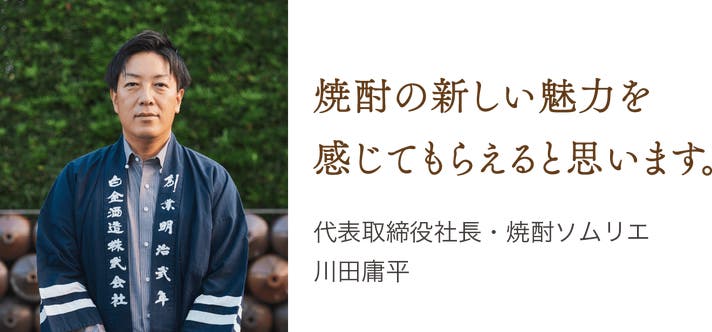 明治2年創業の白金酒造では、杜氏が昔ながらの仕込方法で伝統の味を守っています。その一方で、より多くの人たちへ焼酎の魅力を感じてもらえるような革新的な酒造りにも挑戦しています。