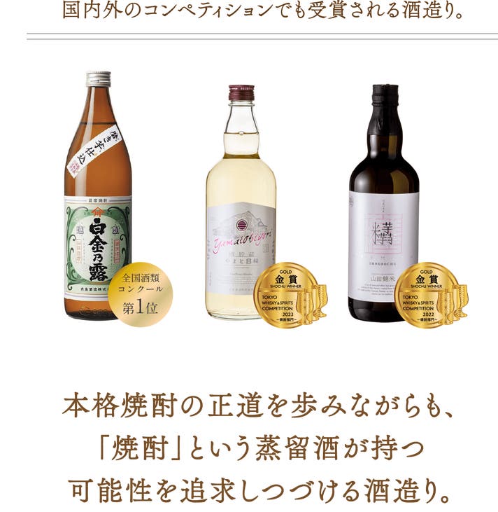 自然豊かな鹿児島の土地と、熟練の職人による感性を活かした酒造りは、これまでにTWSCで9回、全国酒類コンクールで4回など多数の高い評価をいただいています。