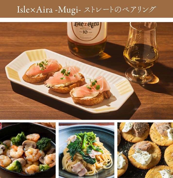 ウイスキーらしさがより強い「麦」は、アヒージョや辛味を抑えたオイルパスタの料理、ガーリックチーズとの相性が抜群。
