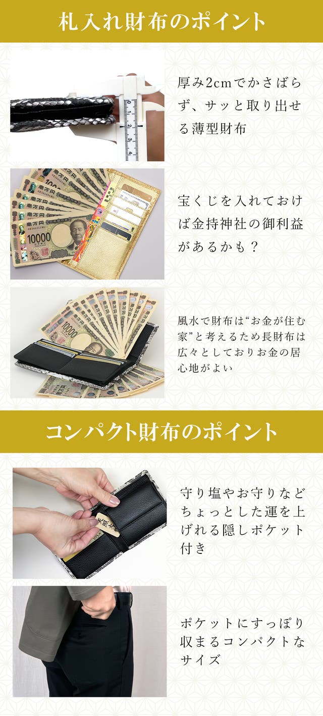 - 財布の良さも抜群!厚み2cmでポケットに入るサイズ。お守りなどさらに運を上げる隠しポケット付き