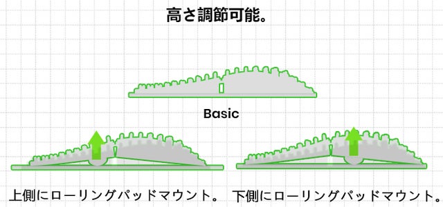 背が低い人は、ローリングパッドを取り外して、基本運動をメイン運動として活用してください。それでもアイソスパインが高く感じられたら、頭の下にクッションを置いて使うと圧力が減り快適になります。