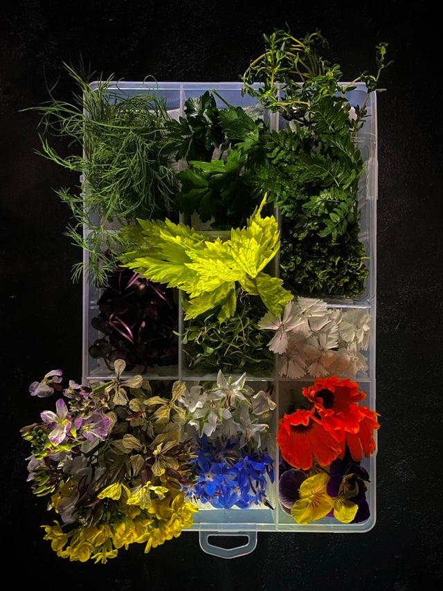 メインの食材はもちろん、料理を彩るエディブルフラワーやハーブなどのガーニッシュまで、すべて「本物の食材」にこだわっています。