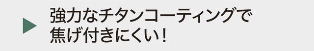 強力なチタンコーティングで料理が焦げ付きにくいから楽々!