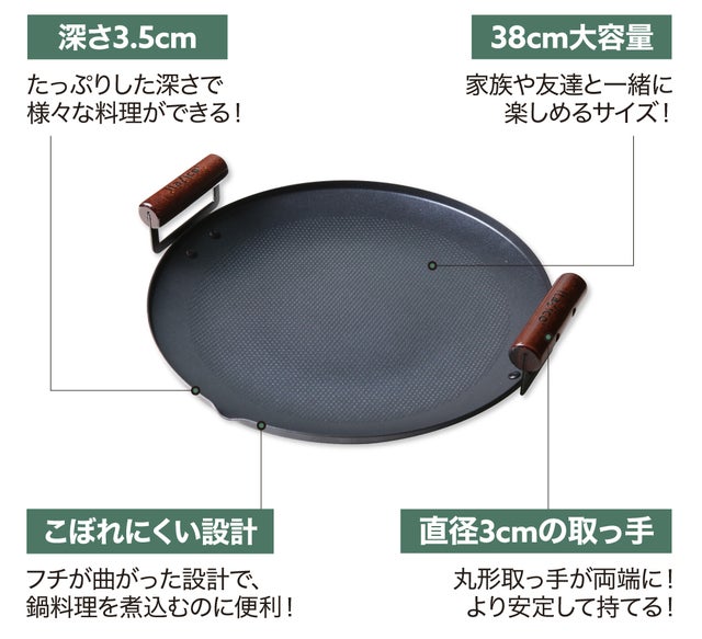 - 耐久性の高い炭素鋼で作り、直火にも剥がれたり変形する心配がなく、長く使える!