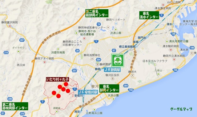 東名静岡インターよりも15分第二東名の岡部藤枝インターからも15分程度です。清水インターまで15分です。第二東名の新静岡インターも15分。(渋滞をしていない時間帯の目安時間)とてもたくさんの人が、気軽に訪れやすい地域です。