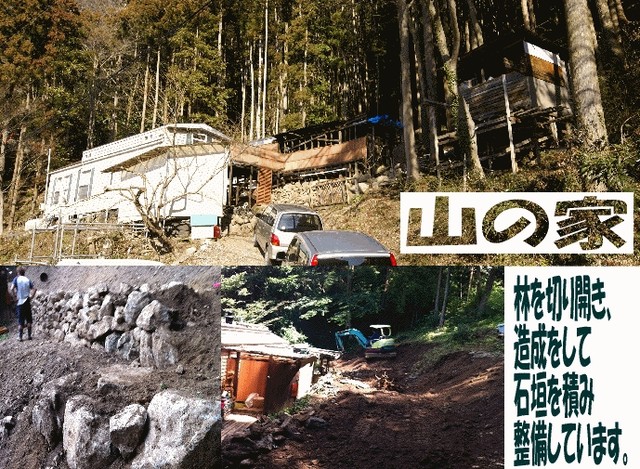 もう少し話を戻すと、2005年ほどに静岡に川崎から戻ってきました。そしてすでに所有していた丸子の山にトレーラーハウスを設置して生活をしてきました。今は近所に普通の家を建て本宅にしていますが、都市部に住んでいたころから山のなかで生活をしたい希望がありました。山のなかというか、土のなか、自然のなかでの暮らしがしたかったのです。そうして、所有していた山林を自分たちで草を片付け、杉の木を伐採し、土地造成をしてもらいました。そしてゆっくりと、段々畑を作り、石垣を作り、小屋を建て生活の基盤を作ってきました。ずっとやりたかった農家になるということが2013年に道が開け、広域の地所を管理するようになり、今は山の家の整備がおろそかになってきましたが『いたち村』の空間です。
