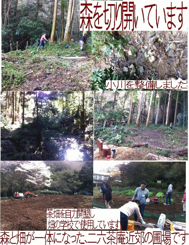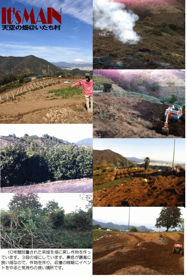 いたち村で使える畑の半分は、開墾畑です。主に茶畑を開墾し、畑にしました。茶価が下がり、茶の栽培をしなくなる畑が周囲に多くあり、そこを畑に戻しました。今、耕作放棄地が全国的に問題になっています。それは農業をやっても収入にならないから、広大な畑が放棄されました。そんなもったいない場を利用し、大地と親しむ空間を作っています。