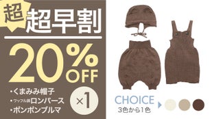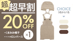 【超超早割20%OFF】くまみみ帽子・ワッフル調ロンパース 1色2点セット